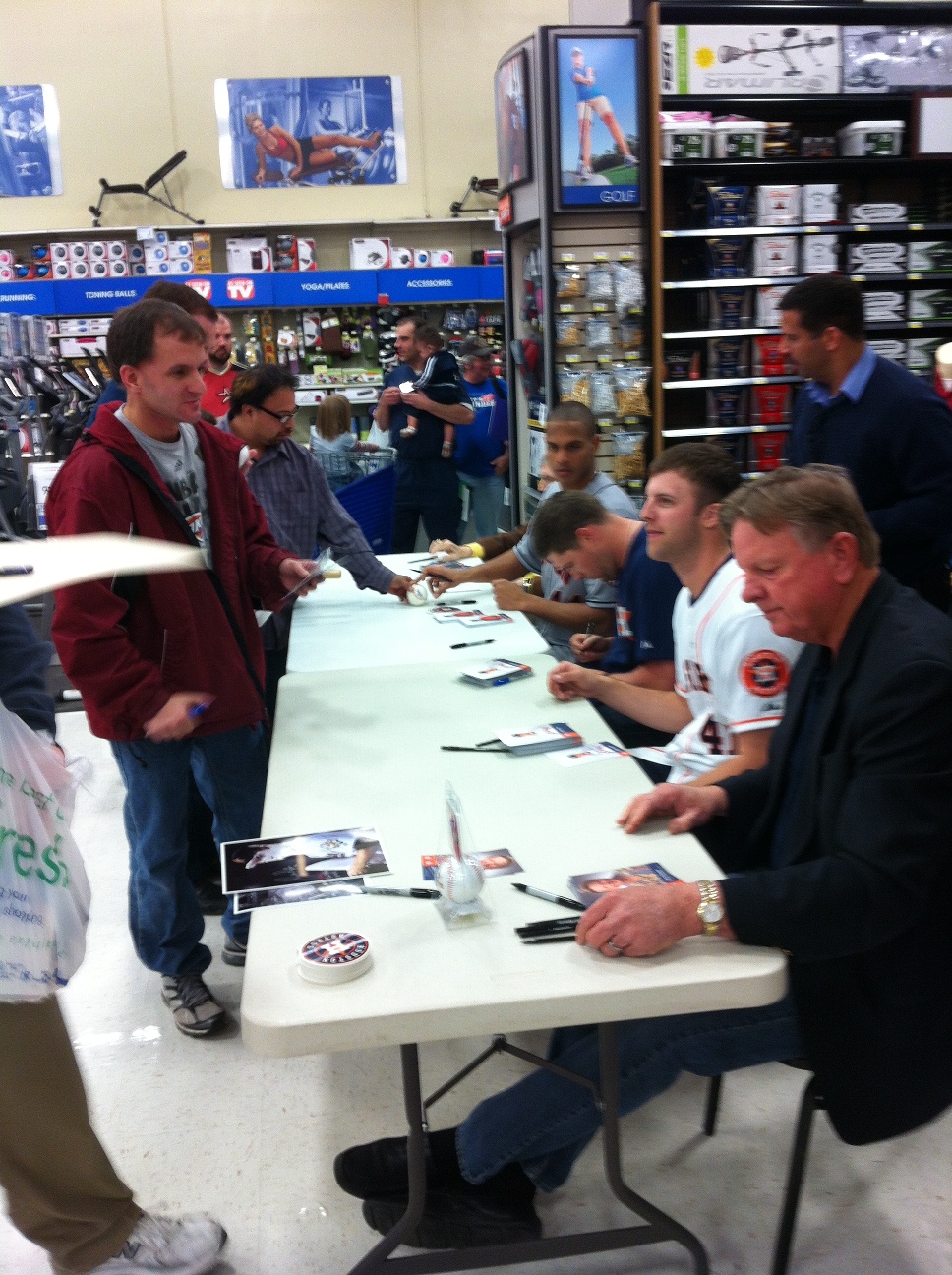 There is a story behind this picture I would like to share: It was taken by one of our great sponsor services coordinators, Caitiln Kinser. She stood aside patiently and politely while Bob and I talked shop, which I’m sure she had absolutely no interest in. After I was done with Bob, Caitlin wanted to get a picture with Gio Gonzalez. So we find where he’s at, and just as Caitlin is about to step up, some lady behind us swoops in and asks to get her picture taken. At that point, Gio’s handlers said it would be the absolute final picture he was going to take. The worst part? The lady asked Caitlin to take the picture, to which Caitlin’s credit, she happily obliged. Never change, CK. We’ll get ’em next time.